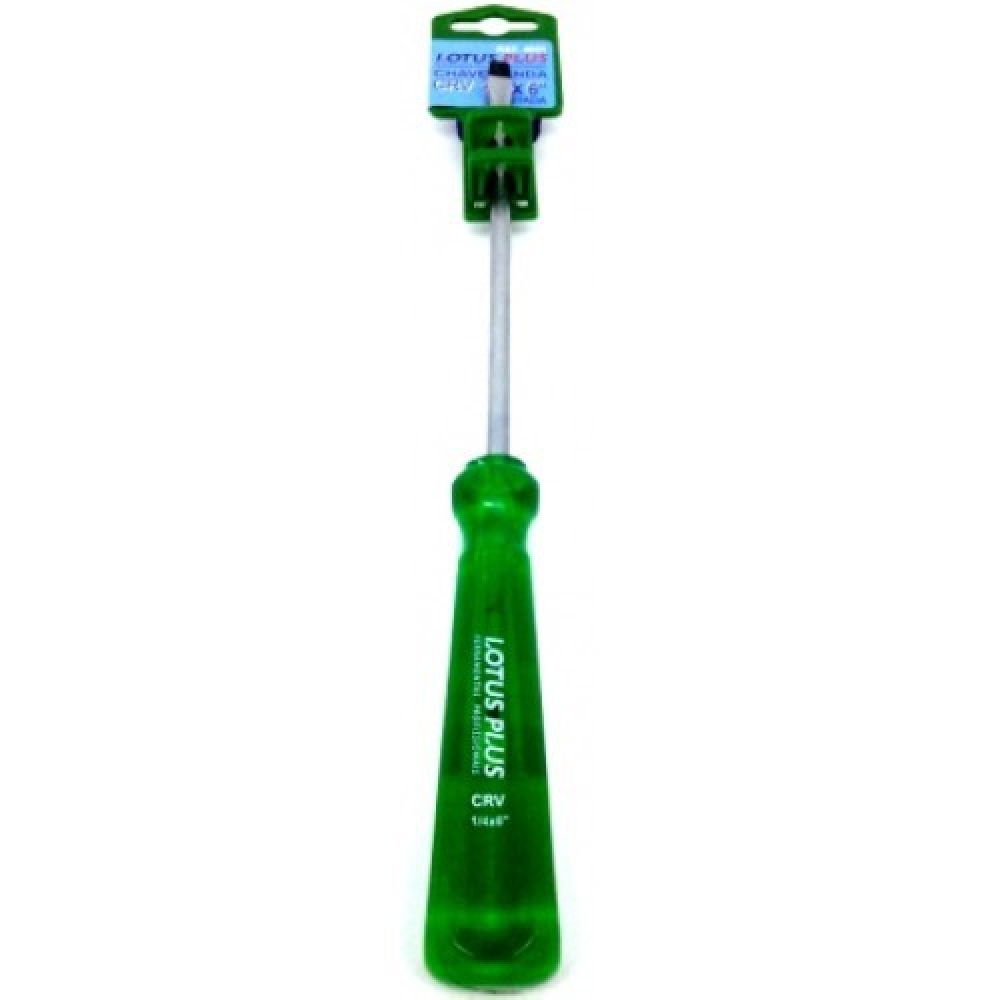A Chave de Fenda Lotus 1/4x06 é a escolha ideal para quem busca precisão, resistência e conforto no manuseio. Com ponta chata de 1/4” e haste de 6” (150 mm), ela é perfeita para tarefas que exigem força e controle.