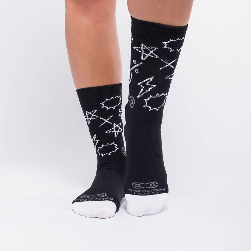 A Meia Marcio May Sports New é a peça coringa que todo ciclista precisa ter. Com um design gráfico moderno que combina as cores clássicas preto e branco, ela é extremamente versátil e fácil de combinar, adicionando um toque de estilo a qualquer uniforme, seja ele colorido ou neutro.
